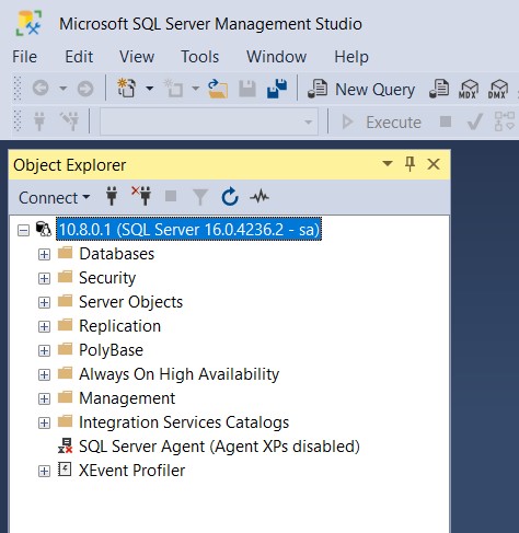Step 6 – Tes koneksi dari Klien, misalnya menggunakan SQL Server Management Studio